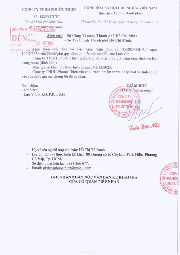 Vietgas Holding - Công ty TNHH Phước Thiên, trân trọng thông báo:
